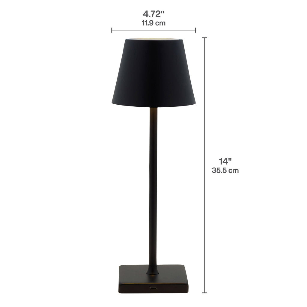 Elegant and stylish, this Mikasa Set of 2 Rechargeable 14-inch LED Lamps brings sleek, modern style to your living space. Each lamp stands 14 inches tall with a 4.72-inch diameter and features a durable metal construction with striking finishes available in gold or black.