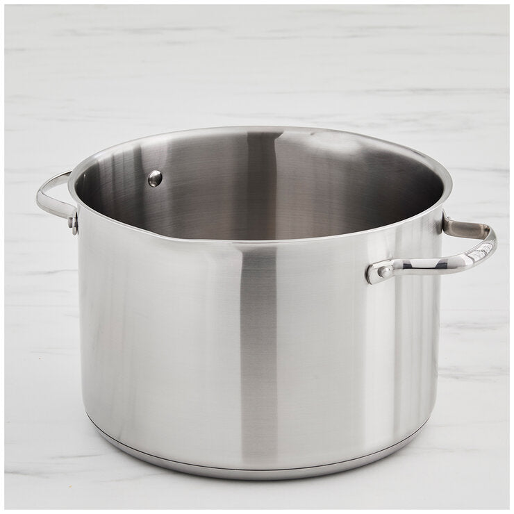 The perfect size pot for cooking a family pasta, corn on the cob, delicious slow cooked stews and classic seafood boils. It’s also great for baking crusty bread, creating a flavourful homemade stock or even for home canning and brewing. Whether you’re making big family dinners, prepping meals or home canning, this 7.6 litre stock pot is a staple of kitchens. This pot is specially designed to save on time and energy while maximising your meals. The 3 ply stainless steel base heats quickly and evenly, while the pouring rim, straining glass lid and spouts make transfers effortless.