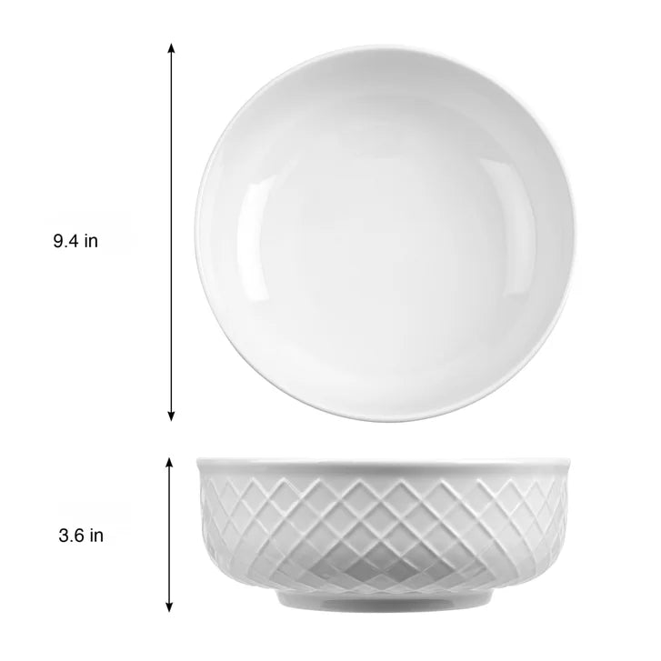 Elevate everyday dining and special gatherings with the Trudeau Porcelain Serving Bowl Set. Crafted from fine porcelain, each bowl features a distinctive raised pattern, making every piece one of a kind. Their harmonious design brings a refined touch to any table. Microwave and dishwasher safe, they combine beauty with everyday convenience and versatility.Includes:(3) Serving Bowls (9.4" D)Made in:China