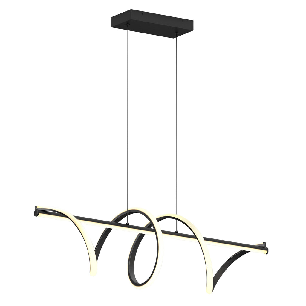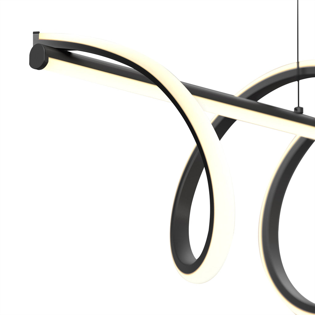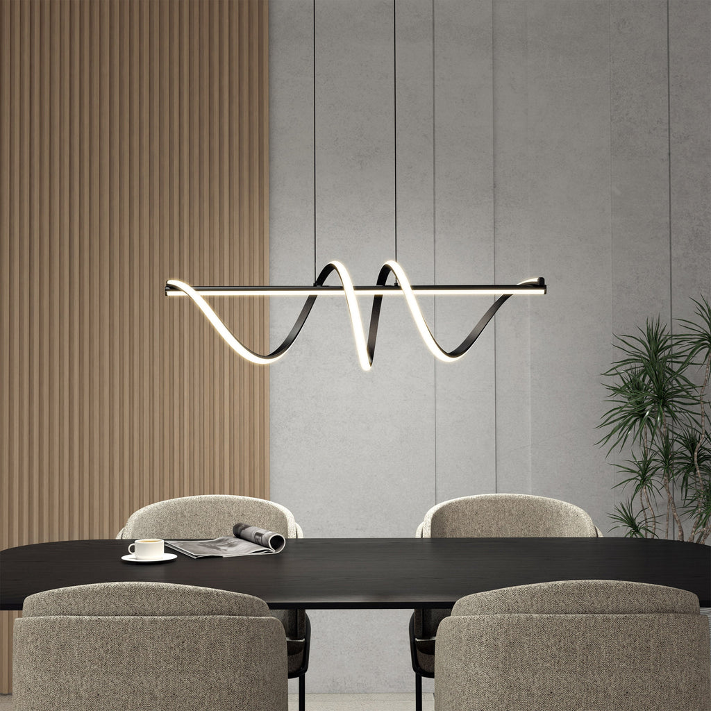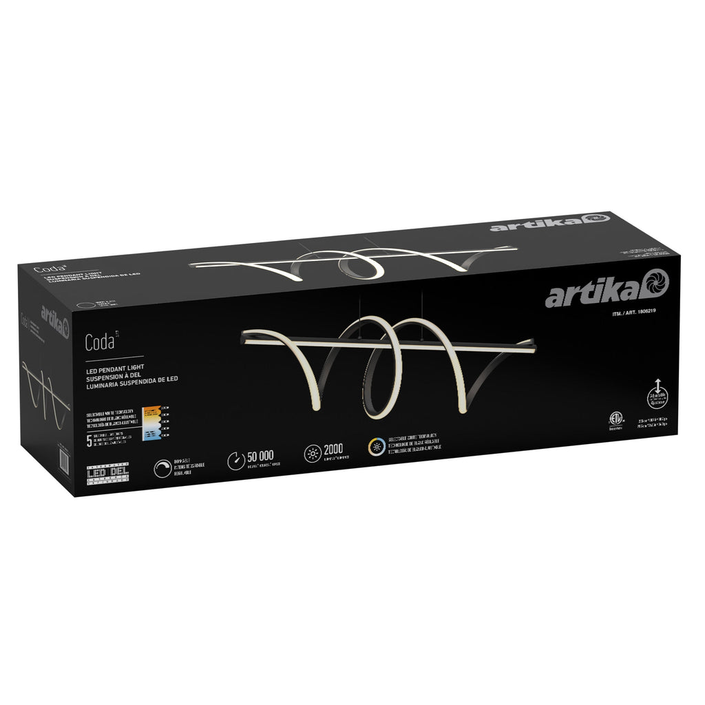 The Artika Coda is a modern 36-inch LED pendant light featuring a unique twisted design with a central light bar surrounded by a curved element that provides even illumination throughout the room. This integrated LED fixture delivers a powerful 2,000 lumens of brightness and offers five selectable color temperatures (2700K, 3000K, 3500K, 4000K, 5000K) ranging from warm white to cool white, allowing you to match nearby light sources or set the perfect mood for any space.
